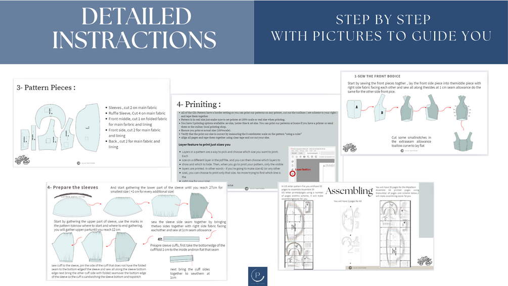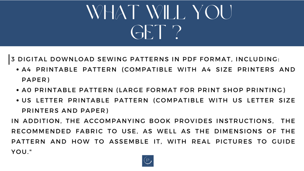 · Book of Instructions : includes recommended fabrics, dimensions, pattern assembly, sewing instructions, and more