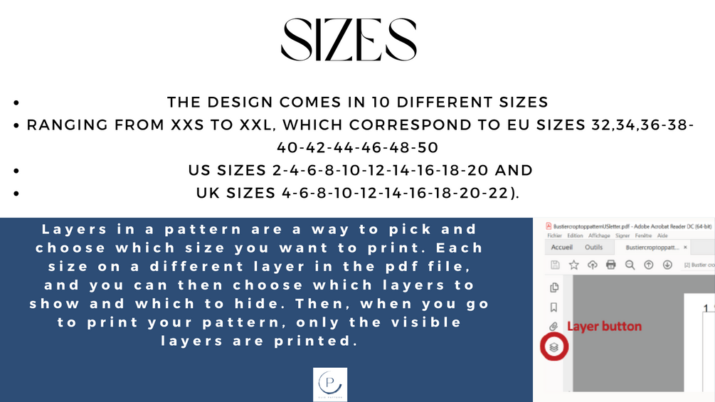 This PDF sewing pattern can be downloaded and printed at home on a personal printer, at a print shop, or projected using a projector file. All my pattern files include a layering option, allowing you to print or project only the size you need or multiple sizes to save ink and time.
