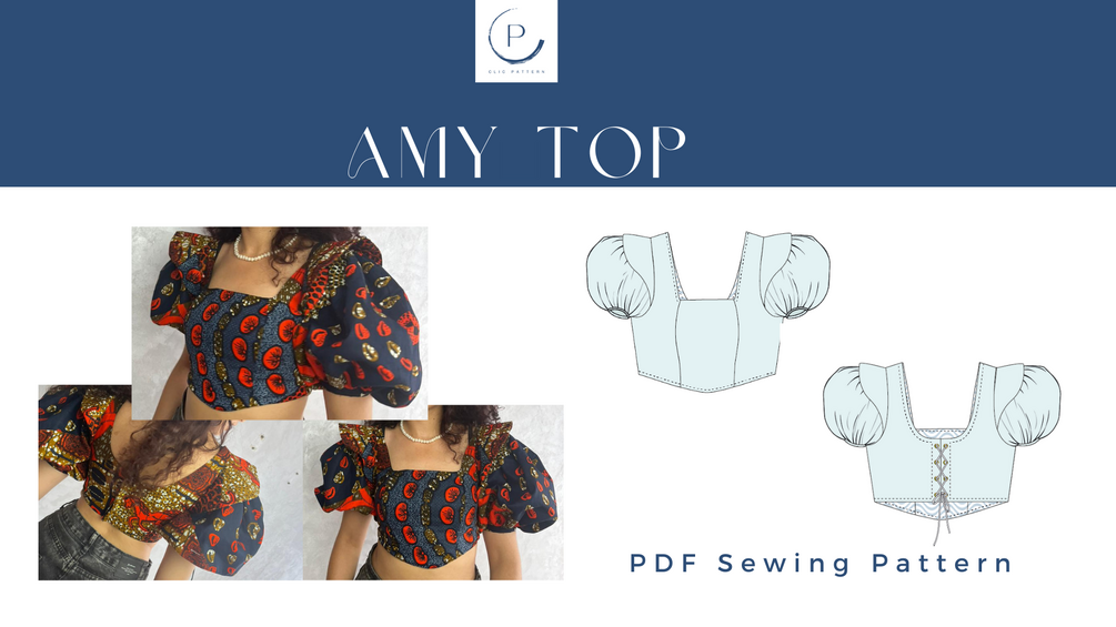 The AMY puff-sleeve top pattern includes 4 PDF files: